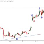 Dupa cum se vede, valul X corectiv a fost mic și dupa X se formeaza un alt triunghi neutral , acum BITCOIN urcand pe valul C albastru de grad mic al acestui triunghi neutral anticipat in 25.10 .