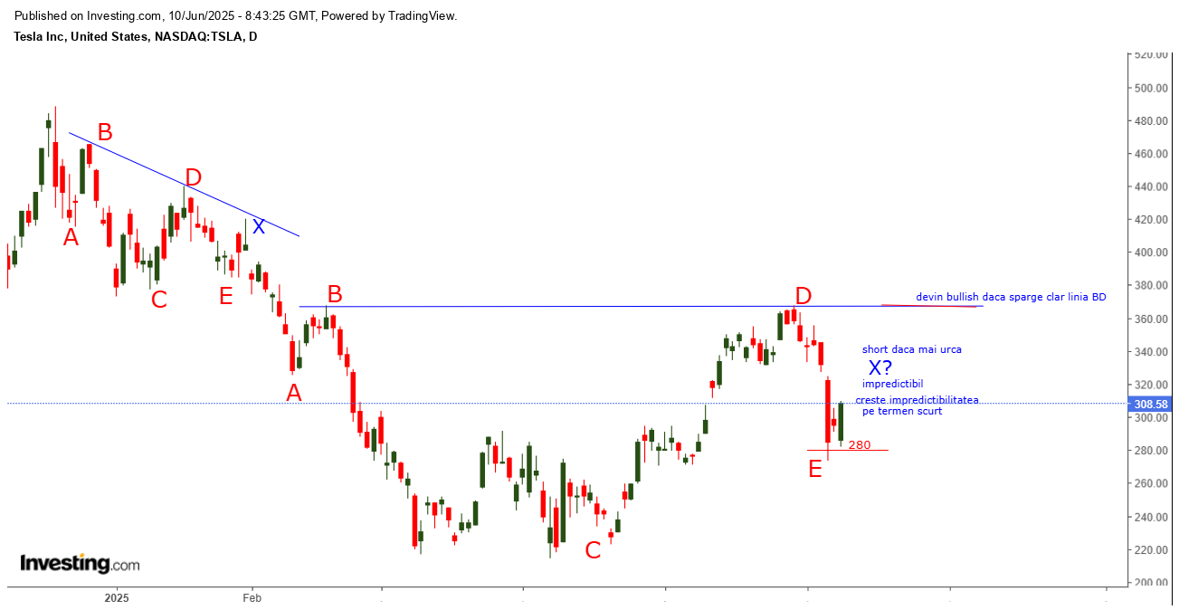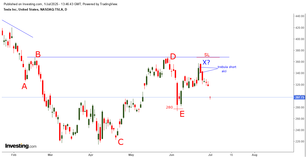 Acest val X impredictibil era OCAZIE DE SHORT TESLA cu SL la 368 , linia BD !!!