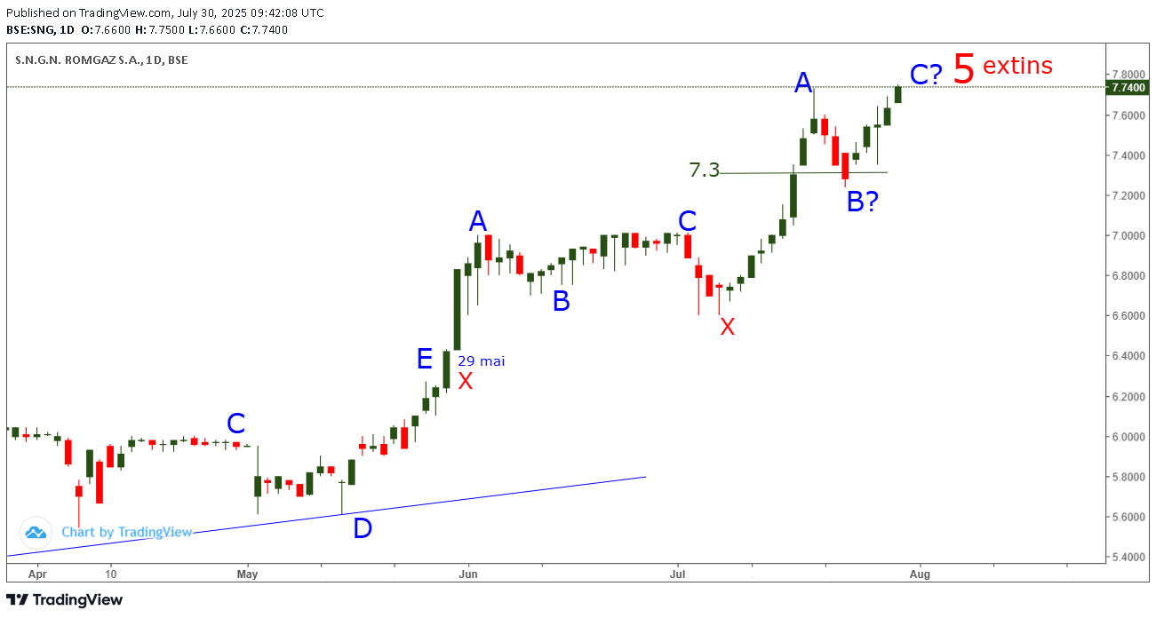 Dupa ce SNG a urcat in 16 iulie pe valul 5 extins de grad mare peste targetul 7.3 anticipat in 29 mai ( cand era 6.3) ,