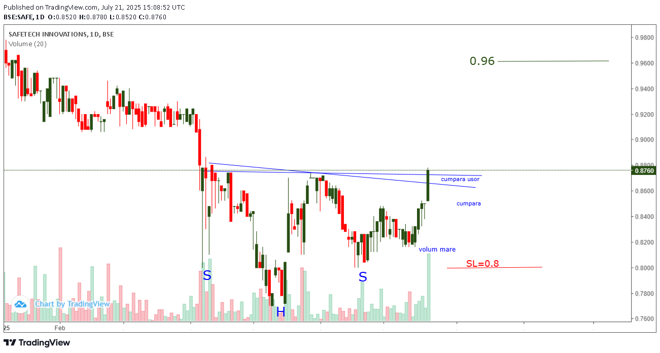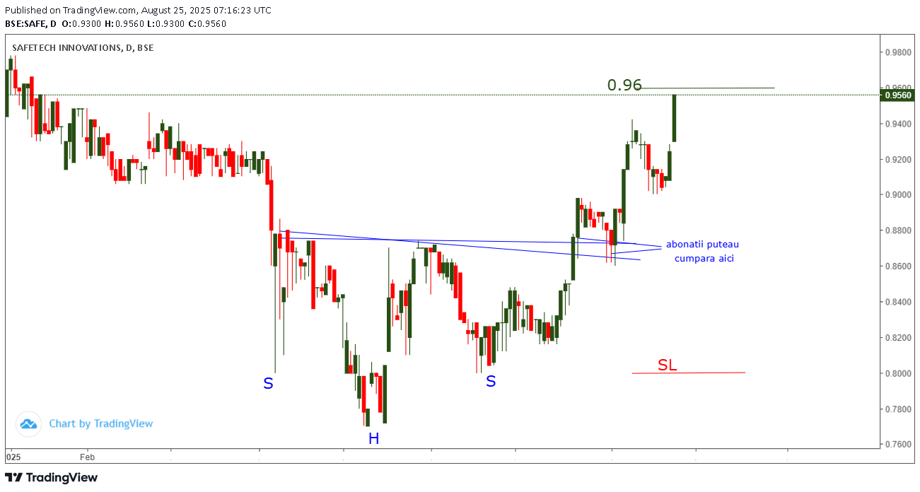 SAFE urca si se apropie de 0.96 anticipat in 21 iulie !!! Leave a Comment / Uncategorized / By admin2 Abonatii care au cumparat SAFE in zona 0.8750 – 0.86 imediat dupa semnalul de BUY dat pe graficul SAFE trimis abonatilor in 21 iulie ,Au acum PROFIT de cca 10 % in zona targetului 0.96 anticipat in 21 iulie !!!!ABONEAZA-TE pentru analize si semnale IN TIMP REAL !!!
