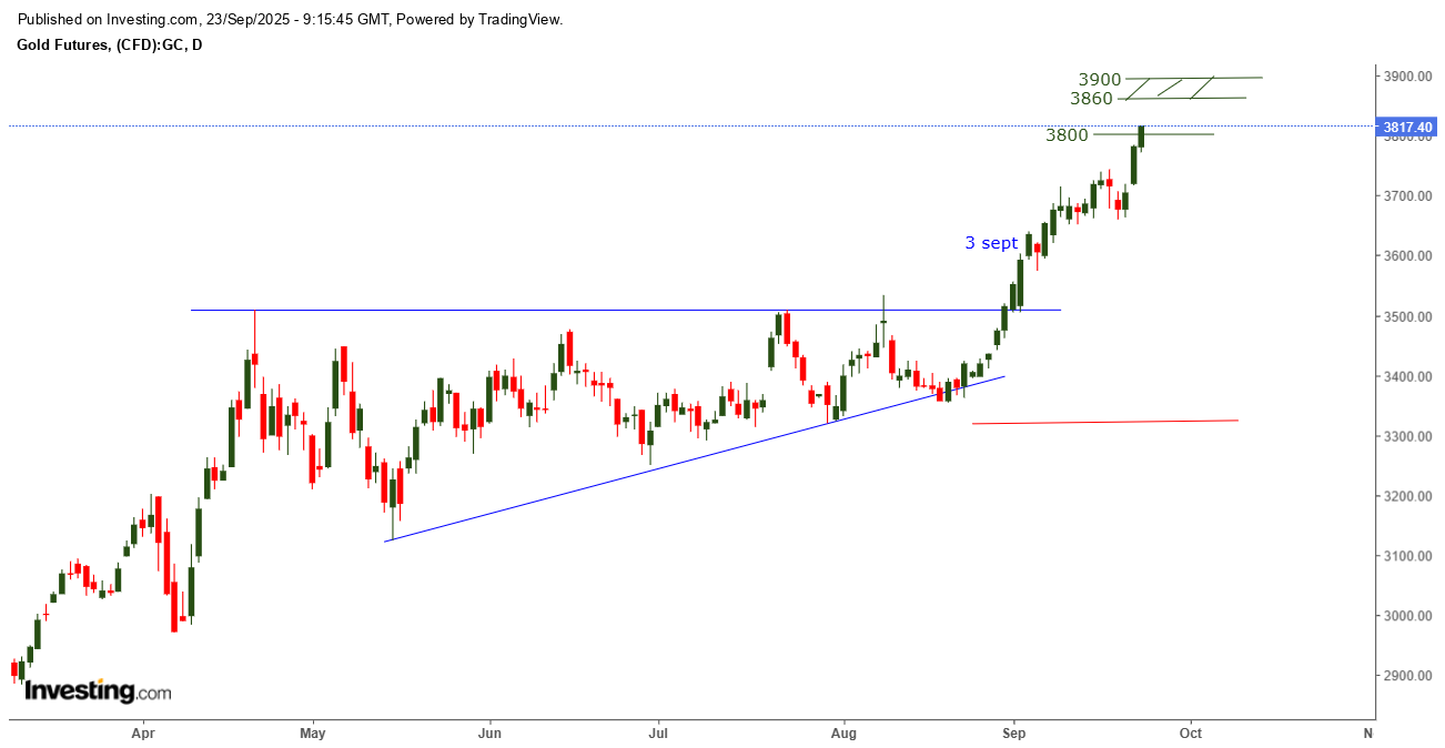 Azi 23 septembrie , urca peste 3800 si se apropie tot mai mult de zona mea de target 3860-3900 anticipata in 3 sept. !!!