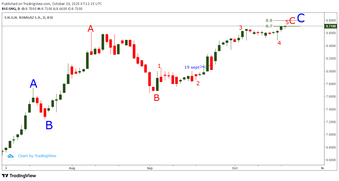 SNG urca si atinge in sfarsit , dupa o lunga stagnare , zona de target 8.7-8.8 anticipata in analiza trimisa abonatilor in 19 septembrie ,cand era 8.07 !!
