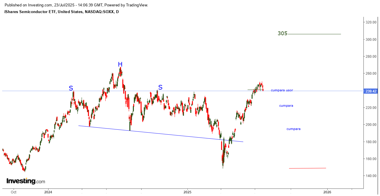 ETF-ul SOXX urca si se apropie de 305 anticipat in 23 iulie !!!