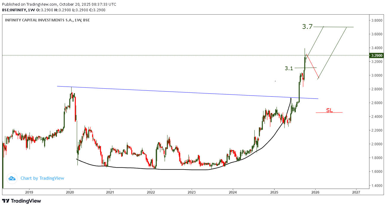 In 20 octombrie INFINITY urca deja peste 3.1 , atentionand abonatii ca trebuie sa urce si MAI SUS spre 3.7 din cauza unui CH gigant ( patern clasic) format pe graficul INFINITY in ultimii 5 ani !!!