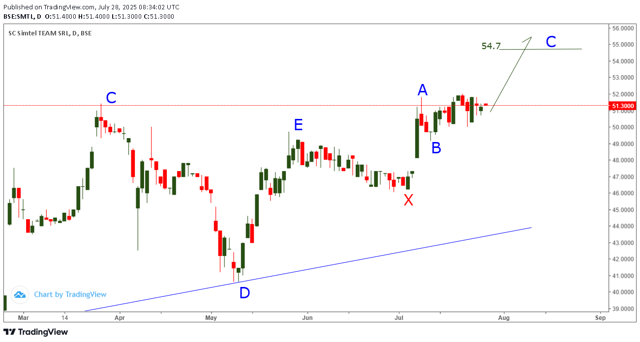 SMTL urca azi 7 august pe C peste 54.7 anticipat in 28 iulie , valul C devine > A .